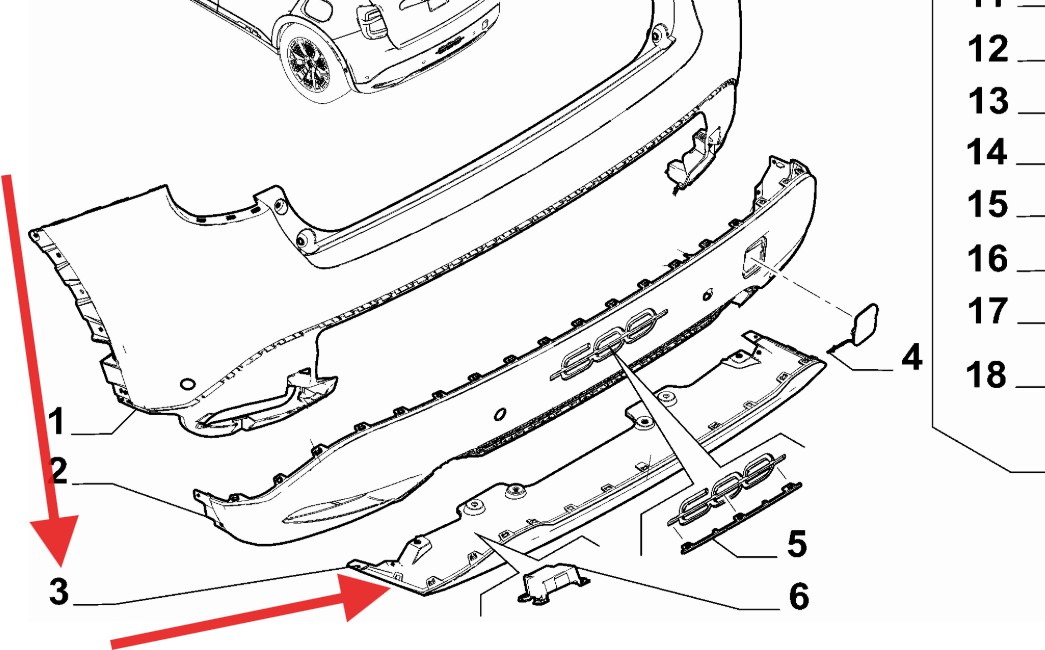 FIAT 600 2023-Present Lower Rear Bumper